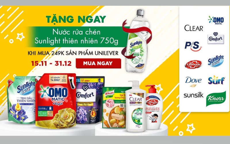 Tặng 1 chai nước rửa chén Sunlight 750gr với hóa đơn từ 249.000đ